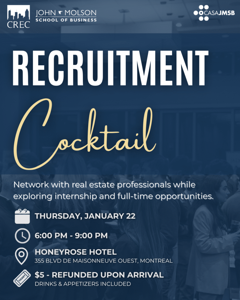 The Concordia Real Estate Club (CREC) is the first real estate oriented club at Concordia University and our goal is to educate and enlighten students from across Montreal on the various aspects of the real estate industry.